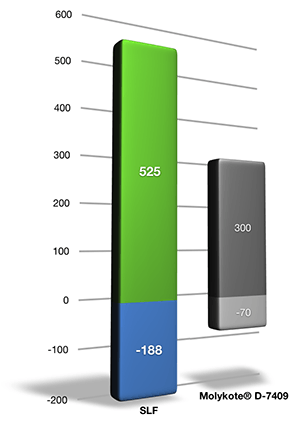 Ideally suited to materials that are notoriously susceptible to galling, such as titanium, stainless steel and aluminium, SLF provides an ultra-low friction barrier across a temperature spectrum from –180°C to in excess of 500°C that protects fasteners from damage and seizure through a multi-cycle operation.